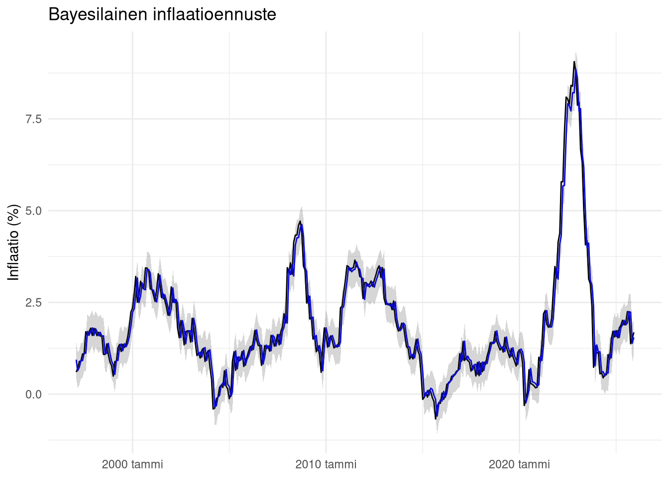 Inflaatiolle rakennetaan bayesilainen aikarivimalli, jossa huomioidaan: